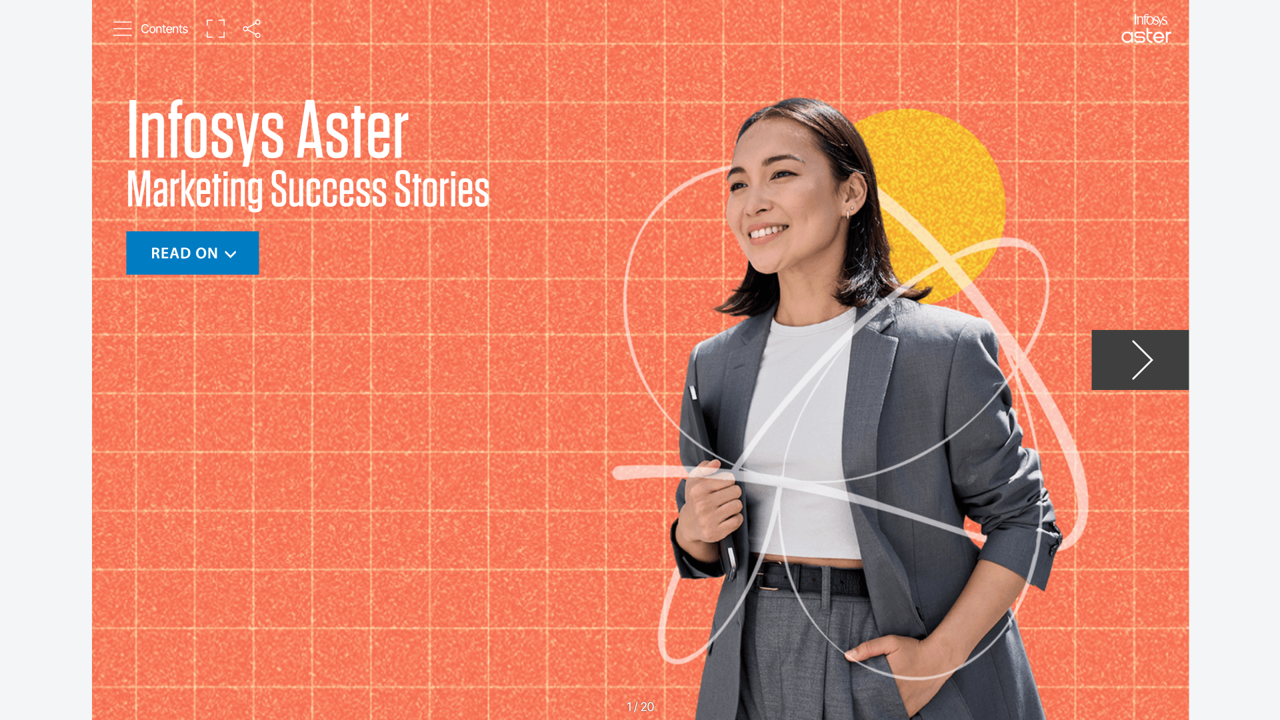 The Infosys Aster Marketing Success Stories ebook combined unique wordplay for each story with an immersive layout and visuals – all of which culminated in an ebook that got featured on the Turtl platform’s wall of fame. Take that, New York Times Best Sellers!